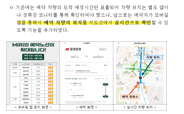 실시간 차량 위치 확인, 교통카드 결제 차단 등 이용자 편의 기능도 강화됩니다.