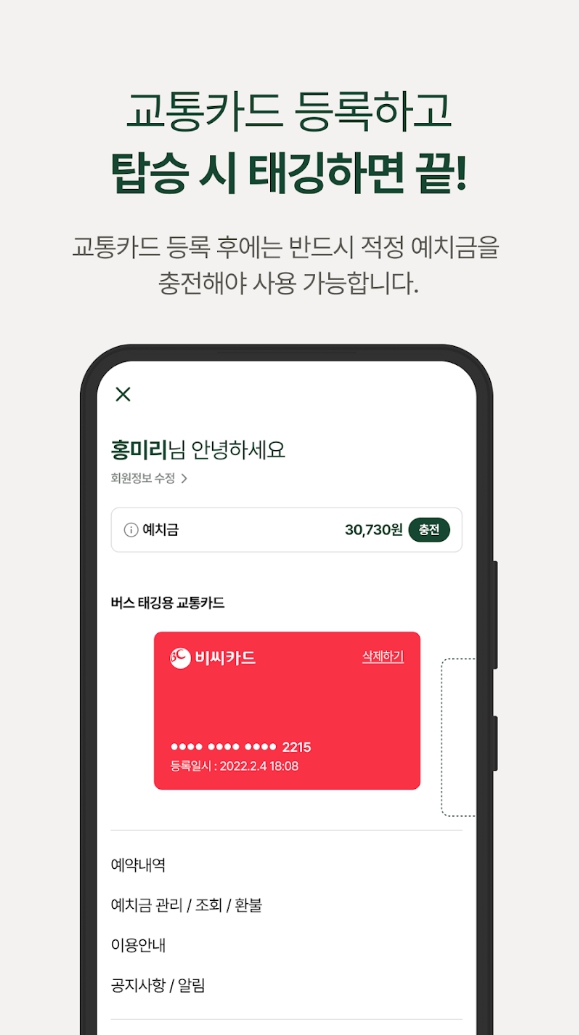 ✔ 탑승 시 등록 교통카드 태그 → 예치금 반환
