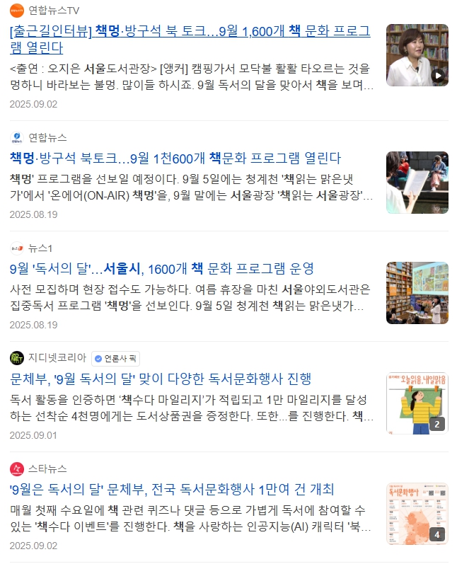 서울시는 매년 9월을 독서의 달로 지정하고 다양한 시민 참여 행사를 열고 있습니다.