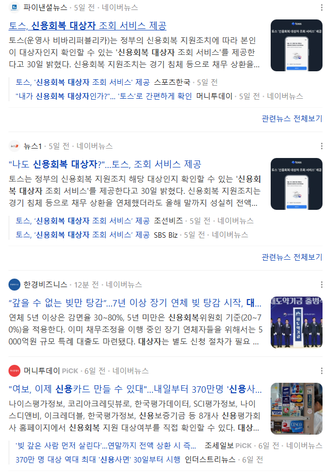 토스 앱 신용회복 대상자 조회
