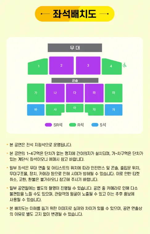 가격은 좌석의 위치에 따라 차등 적용되며, 무대와 가까운 SR석은 빠르게 소진될 가능성이 높습니다.
