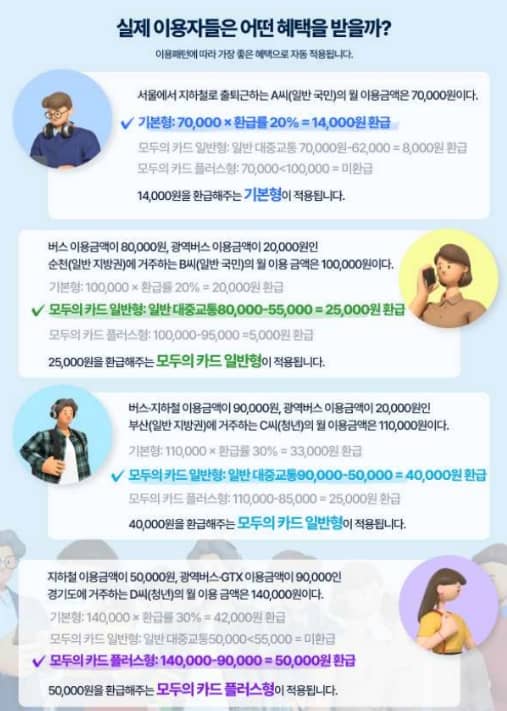 - 적용 교통수단 : 시내버스, 도시철도, 광역버스, GTX, 신분당선 등
