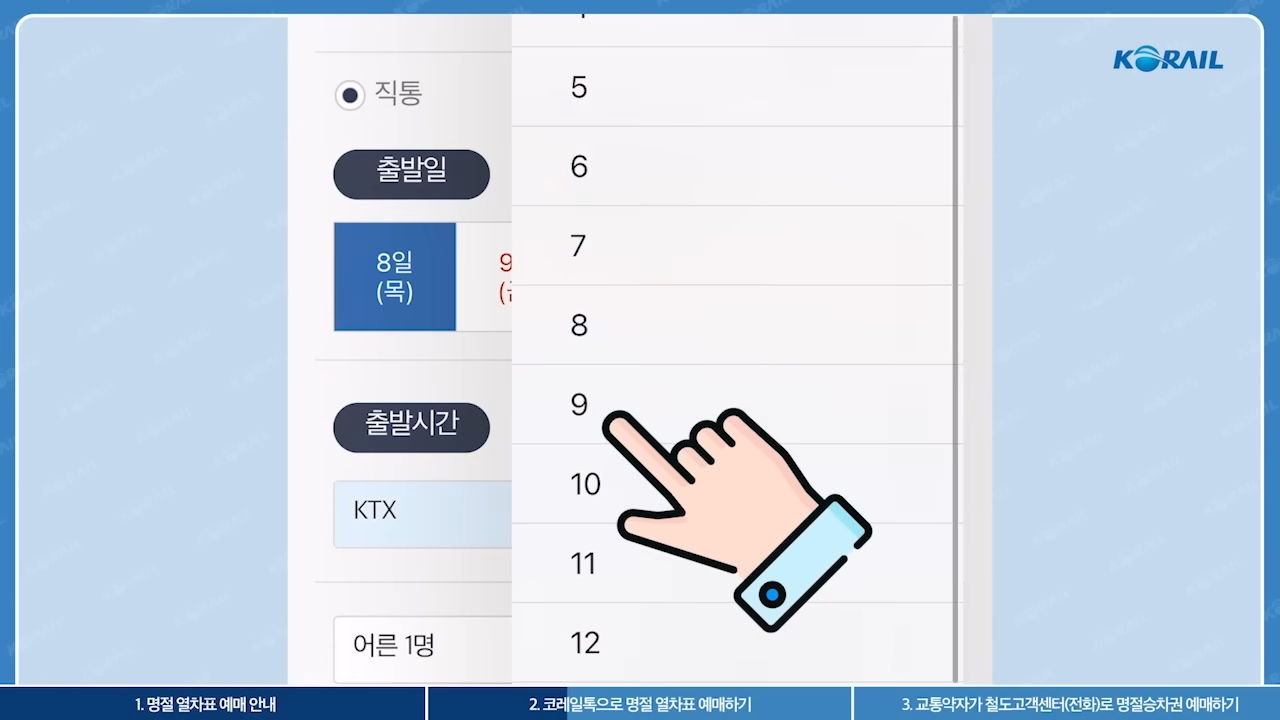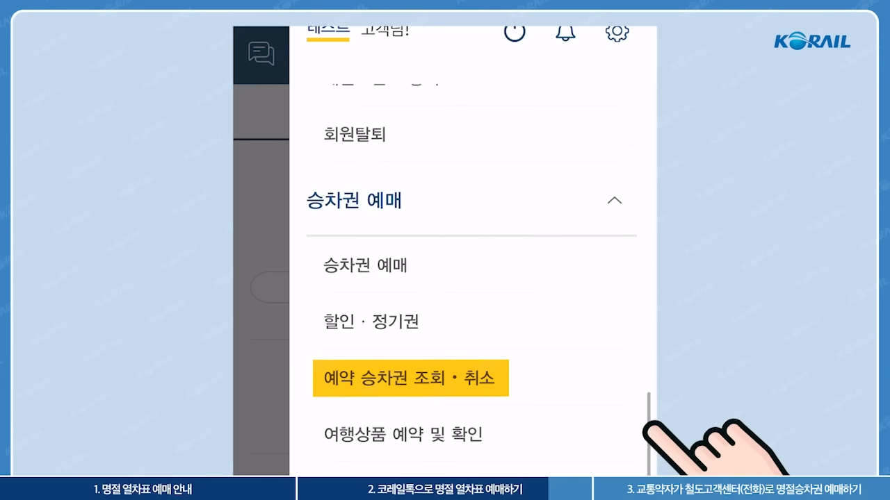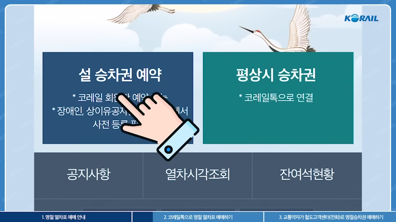 - 코레일톡 앱 실행 후, '명절 승차권 예매' 메뉴 클릭